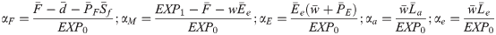 With the total amount of family labor (Lac + Lec) used in the household production of food known, the output elasticities for family labor in food production inputs (δL) is calibrated as the ratio of the value of family labor to the value of the food produced (S ƒ x PF). The output elasticity for land (δA) is calibrated as the ratio of total value of land used in food production to the value of food produced.