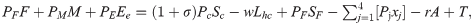 where w and r are the wage rate and rental rate of land, Pj are input prices for the jth non-labor input, PF is the price of food, PM is the price of non-food, PE is the price of education, and Pc is the price of cocoa. The parameter σ is an ad valorem price subsidy used to compensate households for restricting child labor, and T is non-cocoa income. Because food production follows constant returns-to-scale technology, net profits are zero and food production does not explicitly contribute to farm income, although it does reduce the net cost of food items purchased from the market.