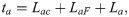 where total time availability for adults (ta) equals time spent on cocoa production (Lac), food production (LaF), and leisure (la). The total time constraint for children is