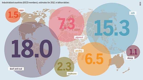 Figure 6. Subsidies for Meat Production From Industrialized Countries (OECD Members), Estimates for 2012, in Billions of Dollars