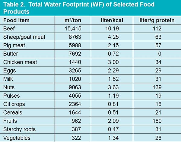 Table 2. Total Water Footprint (WF) of Selected Food Products