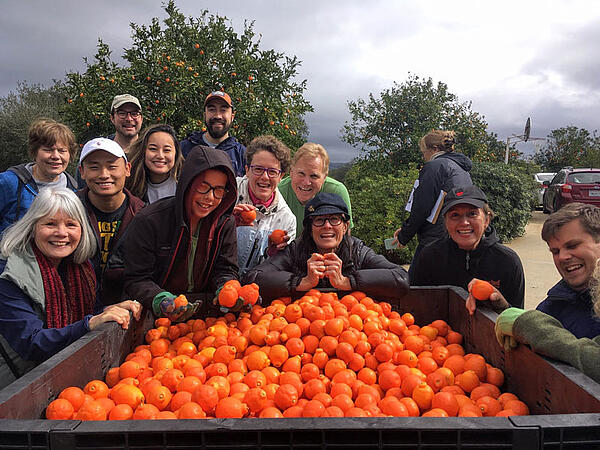 Wir sind eine gemeinnützige Organisation mit vier Mitarbeitenden. Über 1.000 Freiwillige helfen uns jährlich, überschüssiges Obst und Gemüse von über 600 Erzeugern auszulesen oder zu ernten. Diese überschüssigen Lebensmittel liefern wir an 60 Partnerorganisationen in San Diego County in Kalifornien.